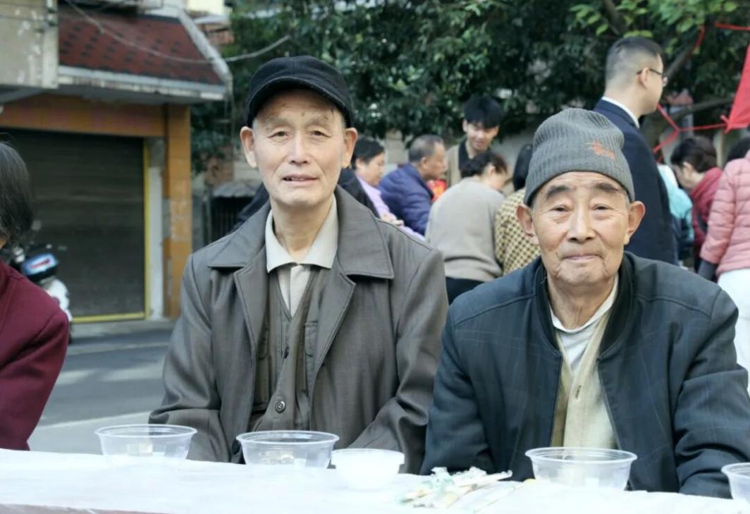 老人们一起吃饺子