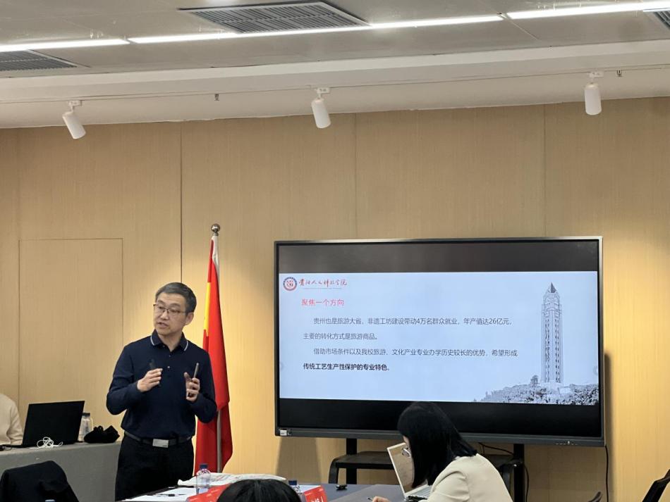 在专题发言中,金颖若院长重点介绍了beat365非遗专业建设情况,指出以该专业为纽带,与相关专业联动形成的“文化旅游+乡村振兴”专业集群被学校列为重点发展方向,并确定为校级重点建设学科。该专业建设以传统工艺生产性保护为方向,重点开展三方面工作:一是打破学科壁垒、深化专业融合,拓宽学生跨学科视野;二是加速智慧化转型、强化数字工具应用,提升非遗记录传播与创新转化能力;三是推进课程思政、增强文化自信,实现多元发展与文化传承统一,培育复合型人才,服务乡村振兴战略。他强调,贵州作为非遗资源大省,非遗形态丰富多样,且生产生活方式保存较为完整,为专业集群与学科建设提供了得天独厚的条件。