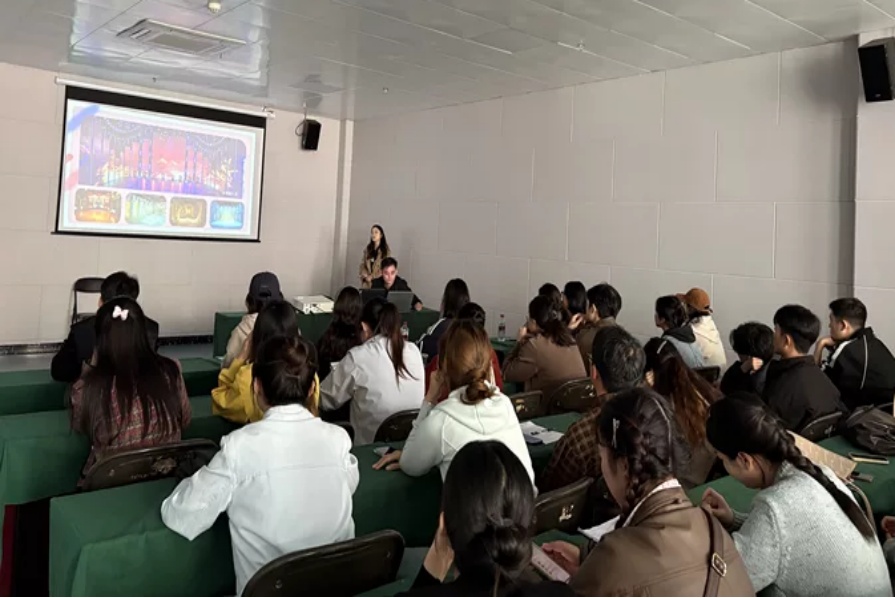 招聘会上,企业宣传负责人徐倩全面介绍公司发展历程、业务范围、企业文化与发展规划,结合行业需求解读艺术传媒领域人才要求与职业发展路径;人事经理朱旭详细说明招聘岗位、薪酬福利、晋升通道及培训体系;总经理李研以经典项目案例,展现公司在舞台演艺、艺术策划、文化传播等领域的综合实力,引发学生广泛关注。