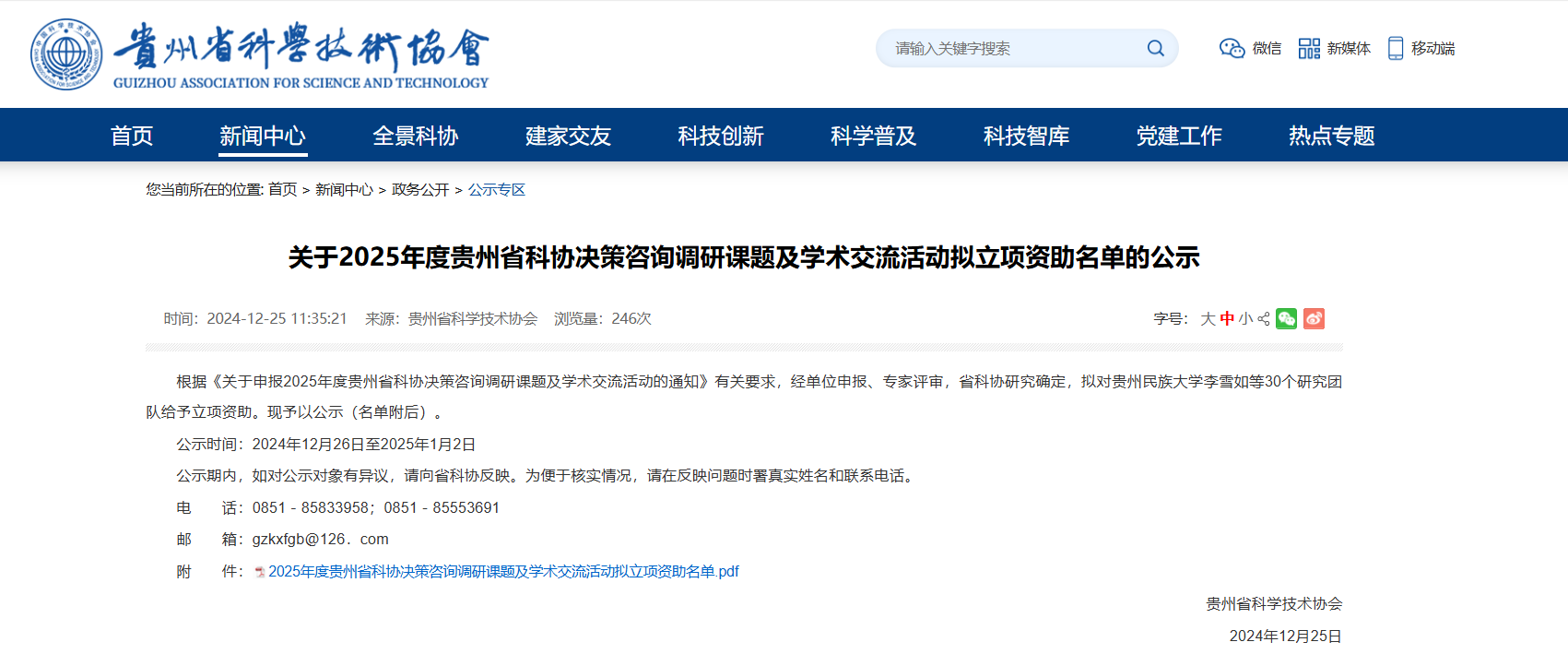 近日,贵州贵州省科学技术协会公布了《关于2025年度贵州省科协决策咨询调研课题及学术交流活动拟立项资助名单的公示》,beat365杨晓老师申报的青年课题《智慧康养:贵州省康养产业科技赋能路径与策略研究》、杨尚钊老师申报的青年课题《返乡创(就)业青年对乡村社会公共服务设施需求研究》喜获立项。